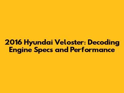 2016 Hyundai Veloster Engine Options: A Detailed Look