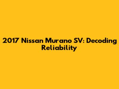 Hey guys! So, you're eyeing a 2017 Nissan Murano SV, huh? Smart choice! It's a stylish SUV with a lot going for it. But, before you dive in, you're probably wondering about one crucial thing: reliability. Is this car going to leave you stranded on the side of the road, or will it be a dependable companion for years to come? Let's break it down and see what the deal is with the 2017 Nissan Murano SV's reliability.
