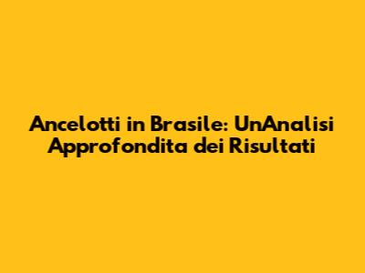 Ancelotti In Brasile: Un'Analisi Approfondita Dei Risultati