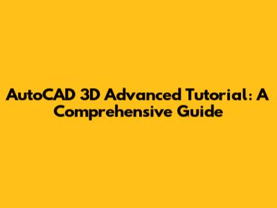 AutoCAD 3D Advanced Tutorial: A Comprehensive Guide