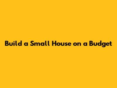 Build A Small House On A Budget
