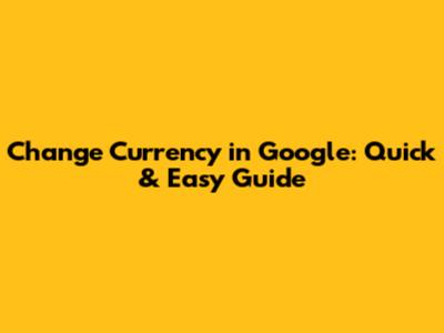 Change Currency In Google: Quick & Easy Guide