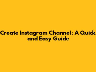 Create Instagram Channel: A Quick And Easy Guide