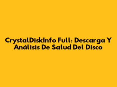 CrystalDiskInfo Full: Descarga Y Análisis De Salud Del Disco