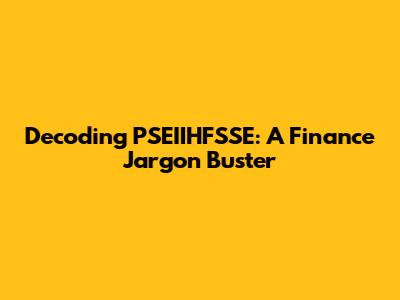 Hey finance enthusiasts! Ever stumbled upon the mysterious acronym "PSEIIHFSSE" and wondered, "What in the world is that?" Well, you're in luck! We're diving deep into the world of finance to unravel this acronym, break down its components, and understand its significance. So, buckle up, because we're about to embark on a journey through the intricacies of this lesser-known financial term. We'll explore its meaning, its importance, and how it fits into the broader financial landscape. Ready to become a PSEIIHFSSE pro? Let's get started!