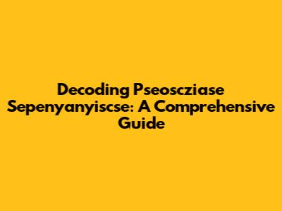 Decoding Pseoscziase Sepenyanyiscse: A Comprehensive Guide