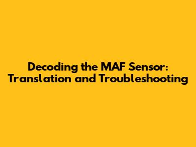 Decoding The MAF Sensor: Translation And Troubleshooting