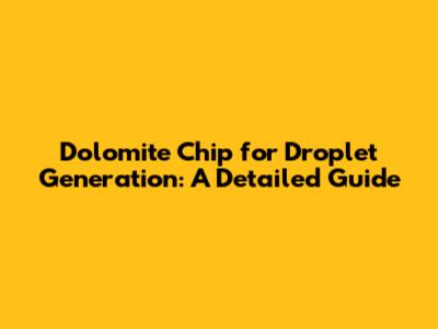 Dolomite Chip For Droplet Generation: A Detailed Guide