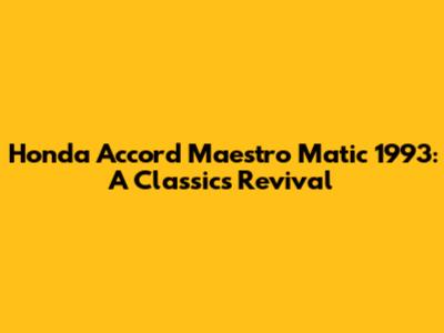 Honda Accord Maestro Matic 1993: A Classic's Revival