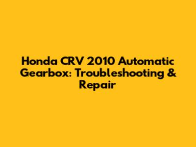 Honda CRV 2010 Automatic Gearbox: Common Issues & Solutions
