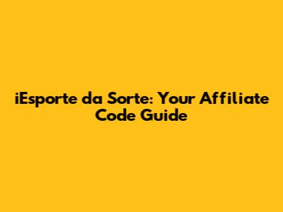 IEsporte Da Sorte: Your Affiliate Code Guide
