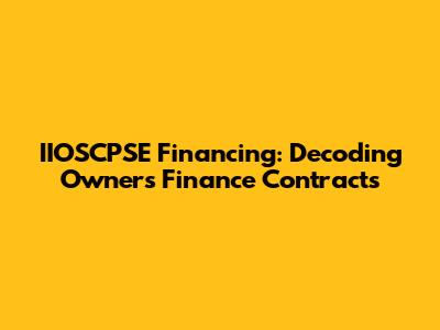 IIOSCPSE Financing: Decoding Owner's Finance Contracts