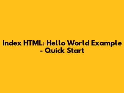 Index HTML: Hello World Example - Quick Start