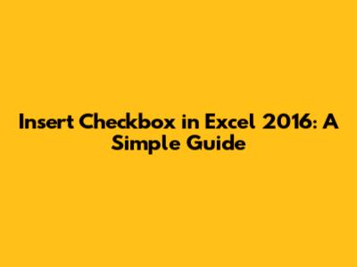 Insert Checkbox In Excel 2016: A Simple Guide