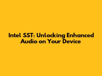 Intel SST: Unlocking Enhanced Audio On Your Device