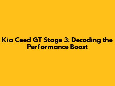 Hey guys! Ever heard the term "Stage 3" thrown around when talking about cars? It sounds super cool, right? But what does it actually mean, especially when we're talking about a sporty little number like the Kia Ceed GT? Let's dive deep and break down everything you need to know about a Kia Ceed GT Stage 3 upgrade. We'll cover what it entails, what kind of performance gains you can expect, the potential costs, and if it's even worth it for you. Buckle up, because we're about to get technical (but in a fun way, I promise!).