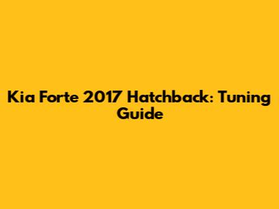 Kia Forte 2017 Hatchback: Tuning Guide