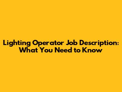 Lighting Operator Job Description: What You Need To Know