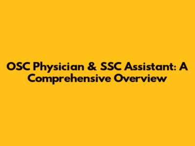 OSC Physician & SSC Assistant: Your Detailed Guide