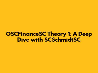 OSCFinanceSC Theory 1: A Deep Dive With SCSchmidtSC