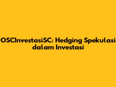 OSCInvestasiSC: Hedging Spekulasi Untuk Investasi Cerdas