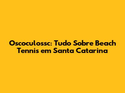 Oscoculossc: Tudo Sobre Beach Tennis Em Santa Catarina