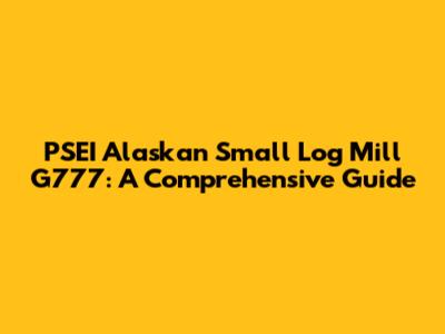 PSEI Alaskan Small Log Mill G777: A Comprehensive Guide