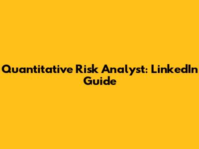 Quantitative Risk Analyst: LinkedIn Guide