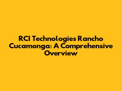 RCI Technologies Rancho Cucamonga: A Comprehensive Overview