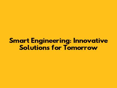 Smart Engineering: Innovative Solutions For Tomorrow