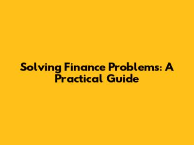 Solving Finance Problems: A Practical Guide
