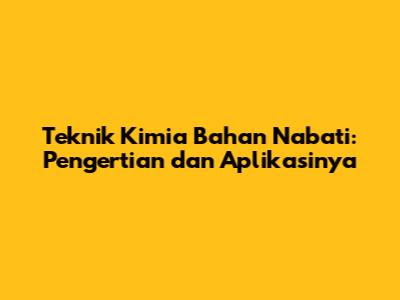 Teknik Kimia Bahan Nabati: Pengertian Dan Aplikasinya
