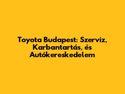 Toyota Budapest: Szerviz, Karbantartás, És Autókereskedelem